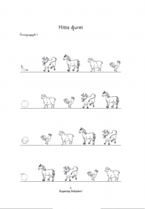 Varje rad på sidan i elevhäftet börjar med en frukt eller ett föremål för att eleverna ska hitta rätt uppgift.