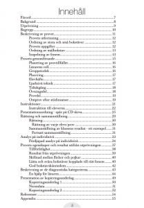 Elevhäftet omfattar 12 sidor. Det finns två övningsexempel. I det första exemplet ska barnen lyssna på ett djurläte och identifiera rätt djur. I det andra exemplet skiftas uppmärksamheten mot språkljuden. Övningsuppgift 2 presenteras längre ner på sidan och det går också att lyssna på hur några av språkljuden låter. Efter övningsexemplen börjar provet med följande uppgifter: